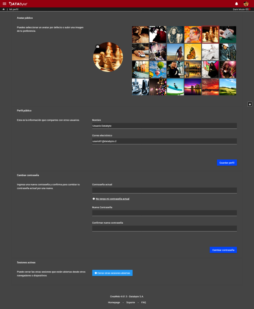 En la sección de “Mi perfil”, puedes cambiar tu foto, actualizar tu nombre y correo electrónico, y modificar tu contraseña. Además, desde aquí también puedes cerrar las sesiones activas en otros dispositivos.