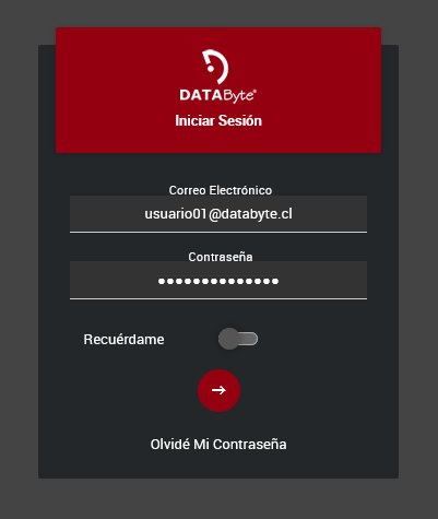 Los datos de inicio de sesión en la imagen son ejemplos. Usa tu propio correo y contraseña registrados.