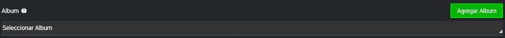 Album: Este campo muestra un listado desplegable de los álbumes creados previamente. Incluye un botón adicional para crear un nuevo álbum directamente, facilitando la organización y selección de contenido.