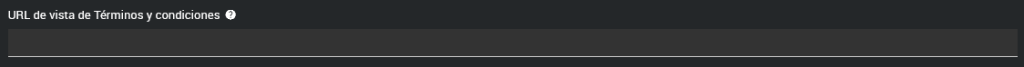 URL de Vista de Términos y Condiciones: Introduce la URL donde los usuarios podrán consultar la página completa con los términos y condiciones. Verifica que la dirección sea válida y accesible, garantizando una experiencia de navegación fluida y sin interrupciones.