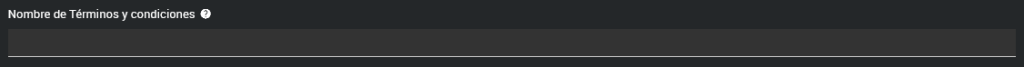 Nombre de Términos y Condiciones: Define el nombre que aparecerá en el enlace de los términos y condiciones de tu sitio web. Este nombre debe ser claro y representativo, facilitando su identificación por parte de los usuarios.