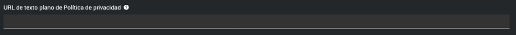 URL de Texto Plano de Política de Privacidad: Especifica la URL que enlaza a la política de privacidad en formato de texto plano. Este enlace puede dirigir a un archivo descargable o a una página que muestre el contenido en este formato. El texto se visualizará directamente en la interfaz del sitio, sin necesidad de redirigir a otra página externa.