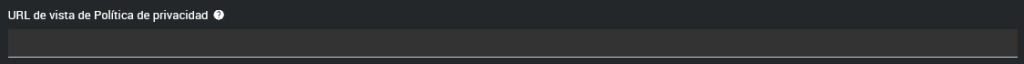 URL de Vista de Política de Privacidad: Introduce la URL donde los usuarios podrán consultar la página completa con la política de privacidad. Verifica que la dirección sea válida y accesible para garantizar que los usuarios puedan visualizar la información sin problemas.