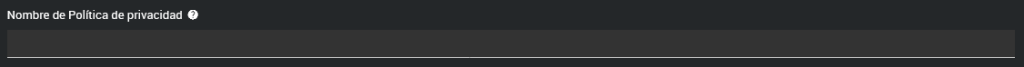 Nombre de Política de Privacidad: Define el nombre que aparecerá en el enlace a la política de privacidad de tu sitio web. Este nombre debe ser descriptivo y fácil de identificar para los usuarios, asegurando claridad en la navegación.