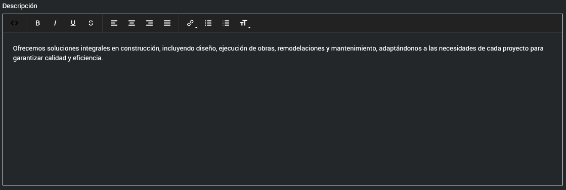 Descripción: Campo opcional que puede mostrarse o no dependiendo del tema que estés utilizando.