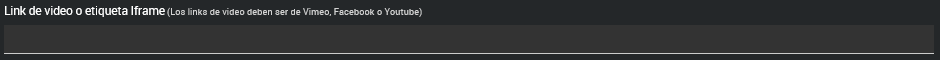 Link de video o etiqueta iframe: Si deseas asociar un video, puedes agregar una URL válida (por ejemplo, de YouTube, Vimeo o Facebook) o un código iframe.