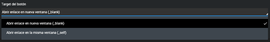 Target del botón: Decide si la redirección abrirá en una nueva ventana o en la misma página.