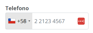 Teléfono: Este campo permite seleccionar un país y validar el número de teléfono ingresado.