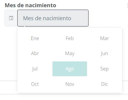 Mes de nacimiento: Permite seleccionar y validar un mes del año.
