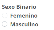 Sexo (binario): Selector único con opciones predefinidas como “Femenino” y “Masculino”.