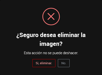 Aparecerá un modal de confirmación solicitando que verifiques tu acción. Haz clic en el botón “Sí, eliminar” para confirmar.