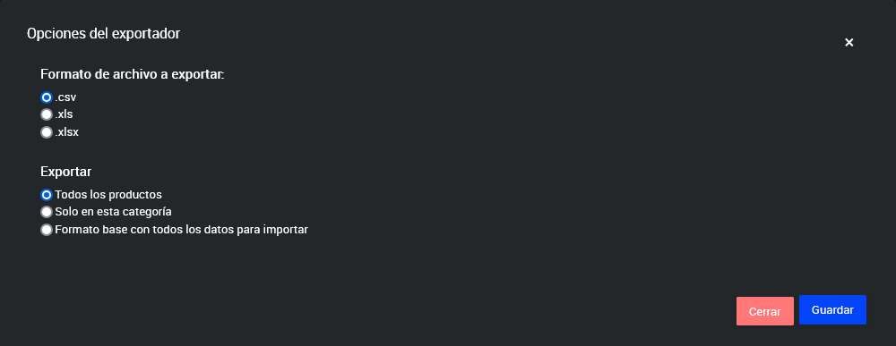 Después de configurar las opciones de exportación según tus requerimientos, haz clic en el botón “Guardar” para procesar la solicitud. Una vez generado, el archivo estará listo para descargar y podrás utilizarlo para respaldos, ediciones o integraciones con otras herramientas.