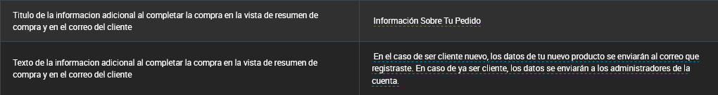 • Título de la información adicional. Define un encabezado llamativo y relevante, como “Detalles adicionales de tu pedido”.