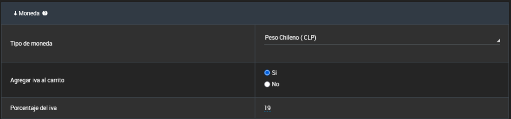 Agregar IVA al carrito: Activa o desactiva la aplicación del Impuesto al Valor Agregado (IVA) en las compras realizadas.