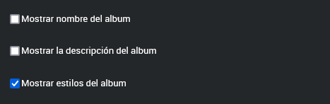 Opciones disponibles para los estilos del álbum