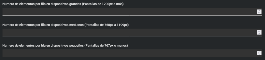 Ajusta el número de elementos por fila para diferentes tamaños de pantalla: