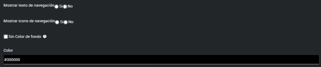• Sin color de fondo: Permite mantener los elementos sin un color de fondo asignado. Si desactivas esta opción, aparecerá un selector que te permitirá elegir un color o ingresar su código hexadecimal.
