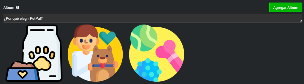 Desde el selector, elige el álbum que deseas asociar al elemento. Una vez seleccionado, aparecerán algunas de las imágenes contenidas en el álbum, lo que te permitirá verificar que has elegido el correcto.