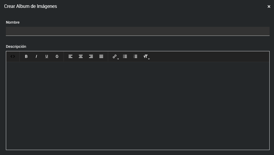 Esto abrirá un formulario donde podrás registrar un nuevo álbum al instante. Para más detalles sobre cómo crear álbumes en Qubia, consulta el FAQ.