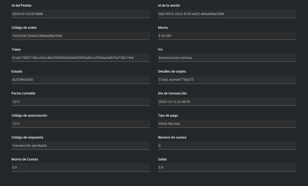 Serás redirigido a una nueva vista que mostrará todos los detalles relevantes de la transacción, como el estado del pago, el monto y la fecha de la operación.