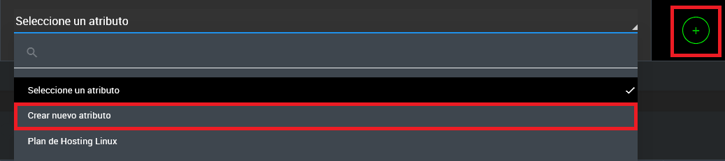 En esta tabla, utiliza el selector para elegir “Crear nuevo atributo” y haz clic en el botón con el ícono de más.