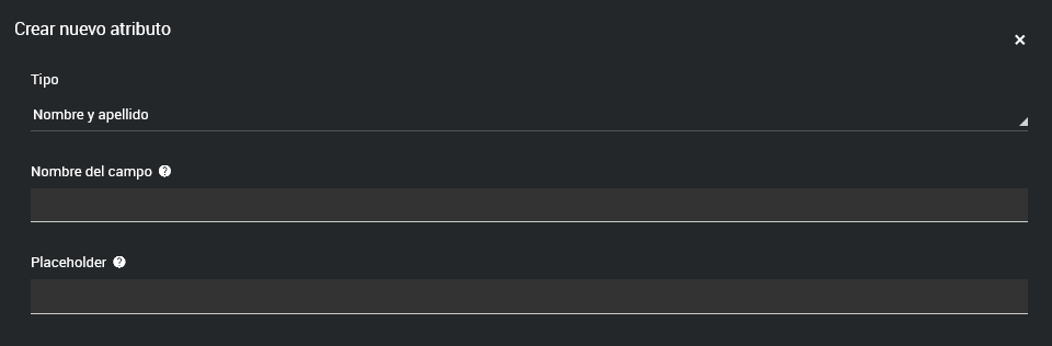 Requieren ingresar el nombre del campo y un placeholder para guiar el contenido. Estos son: