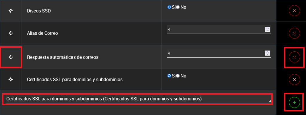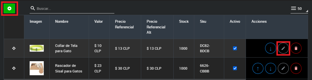Si necesitas editar o eliminar alguna de las opciones creadas, utiliza los botones de la columna de acciones en la fila correspondiente de la opción que deseas modificar.