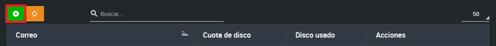 Para agregar una nueva cuenta de correo, haz clic en el botón verde con el ícono de más (+).