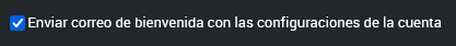 Enviar correo de bienvenida: Marca esta casilla si deseas enviar un correo de notificación a la nueva cuenta, incluyendo las configuraciones necesarias.