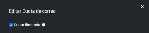 Cuota ilimitada: Si seleccionas esta opción, la cuenta tendrá disponible todo el espacio en disco asignado al dominio, menos el espacio ocupado por otras cuentas de correo.