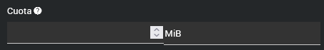 Cuota específica: Si no marcas la casilla de cuota ilimitada, deberás ingresar manualmente un valor en el campo correspondiente y elegir la unidad de medida entre MiB o GiB.