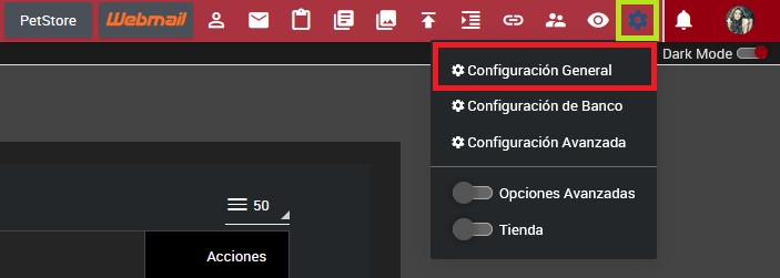 Para acceder a la configuración general, haz clic en el ícono de la tuerca en la barra de herramientas superior y selecciona Configuración General en el menú desplegable.