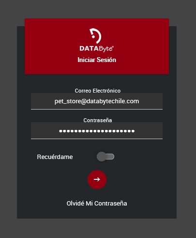 Ingresa el usuario y la contraseña que te proporcionamos y haz clic en el botón con icono de flecha.