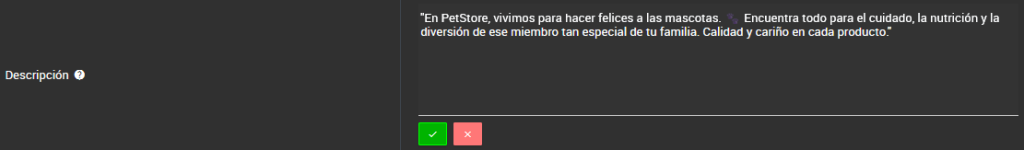 Descripcion: Texto breve que describe su sitio web su contenido o proposito. Es solo informativo y puede mostrarse en el pie de pagina segun el tema activo en su creaweb.