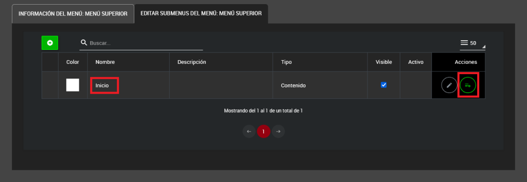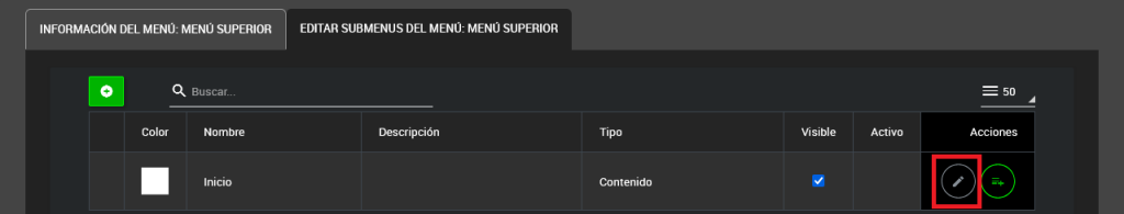 - Desde el menú superior, busca la vista de submenús y haz clic en el botón con el icono de lápiz.