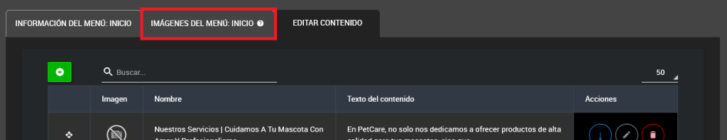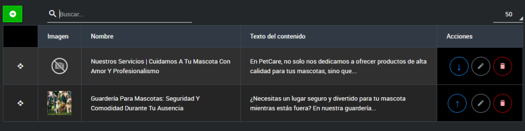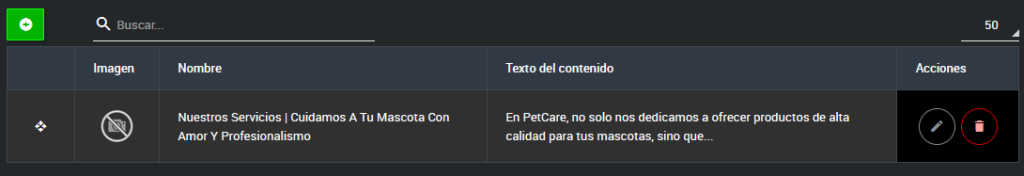 Una vez que hayas configurado todo, haz clic en el botón “Guardar”. Tu nuevo bloque de contenido, incluyendo la imagen, se añadirá a la tabla ubicada arriba del formulario, y se verá reflejado en la parte frontal de tu sitio web.