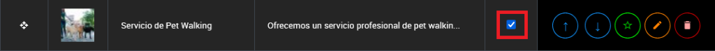 - Estrella: Marca la estrella junto a una imagen para establecerla como la principal de tu galería. Dependiendo del diseño de tu sitio (el “tema”), esta imagen será la primera en mostrarse.