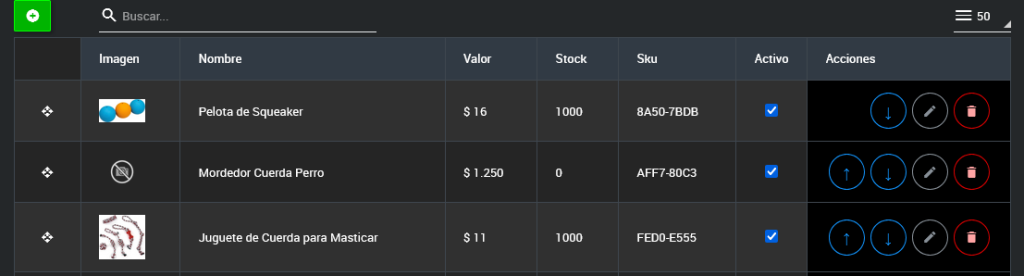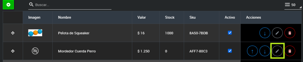 Para que tu producto sea más atractivo, necesitas una imagen. En la fila del producto que acabas de crear, haz clic en el botón gris con el ícono de lápiz que se encuentra en la columna de acciones.