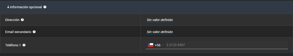 Haz clic y despliega el acordeon/pestaña de Informacion opcional.