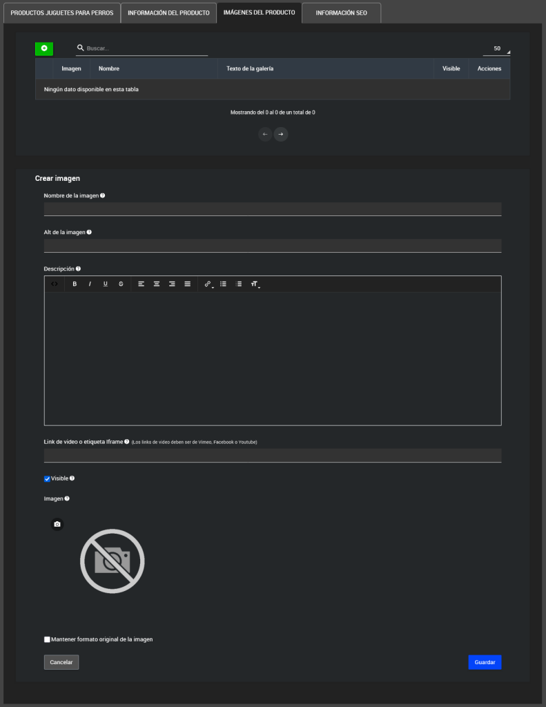 Después de cargar la imagen, haz clic en el botón Guardar para guardar todos los datos y que la imagen aparezca en la tabla superior.
