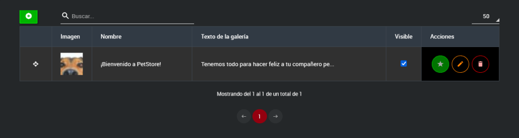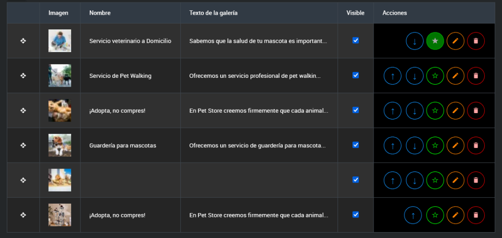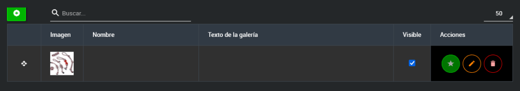 La tabla de la galería tiene botones intuitivos para que puedas organizar tus imágenes fácilmente: