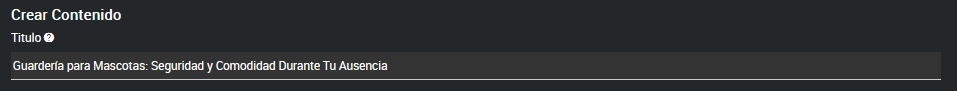 En el campo Título, escribe un encabezado atractivo y descriptivo que invite a los visitantes a seguir leyendo. Este es un dato obligatorio y es la carta de presentación de tu contenido.