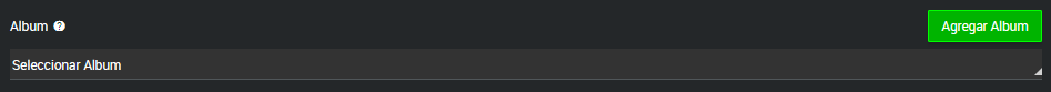 En el selector Álbum, selecciona uno de los álbumes disponibles en tu Creaweb. Si aún no tienes ninguno, puedes crearlo al instante haciendo clic en el botón verde “Agregar Álbum” ubicado en la esquina superior derecha del selector.