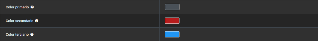 Colores: en estos bloques de configuracion seleccionas la paleta de colores en tu sitio web, se divide en 3 cada uno aplicado a distintos elementos.