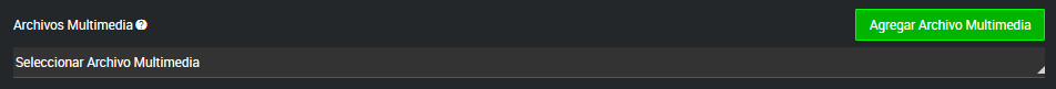 En el selector Archivo multimedia, selecciona uno de los archivos cargados previamente en tu Creaweb. Si no tienes archivos disponibles, utiliza el botón verde “Agregar Archivo multimedia” ubicado en la esquina superior derecha del selector para subir uno nuevo.