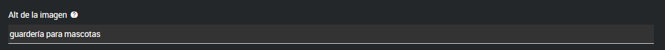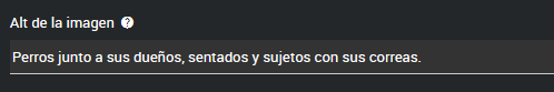En Alt de la imagen, añade un texto alternativo que describa la imagen. Este texto mejora la accesibilidad del sitio y se muestra si la imagen no está disponible, además de ayudar a los buscadores a entender el contenido visual.