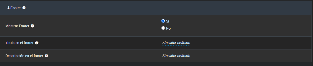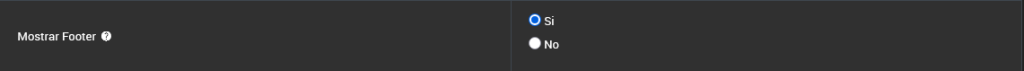 Mostrar footer: si deshabilitas esta opcion, se ocultara el contenido del pie de pagina, excepto el copyright del sitio.