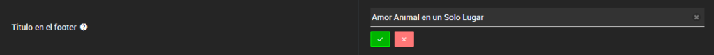 Para editar esta informacion haz clic en en la fila correspondiente en la columna derecha de este bloque de configuracion y guardas el texto, presionando el boton verde. En el caso de los radio button selecciona si deseas habilitar o no el footer.