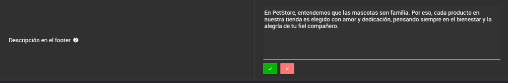Descripcion del footer: según el tema, puede optar por mostrar una descripción en el pie de de pagina de su sitio