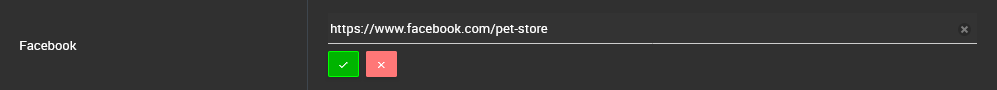 Para configurar la direccion haz clic en la fila correspondiente en la columna de URL, se abrira un input para que ingreses la url de tu red social. Luego le das el boton verde para guardarla: